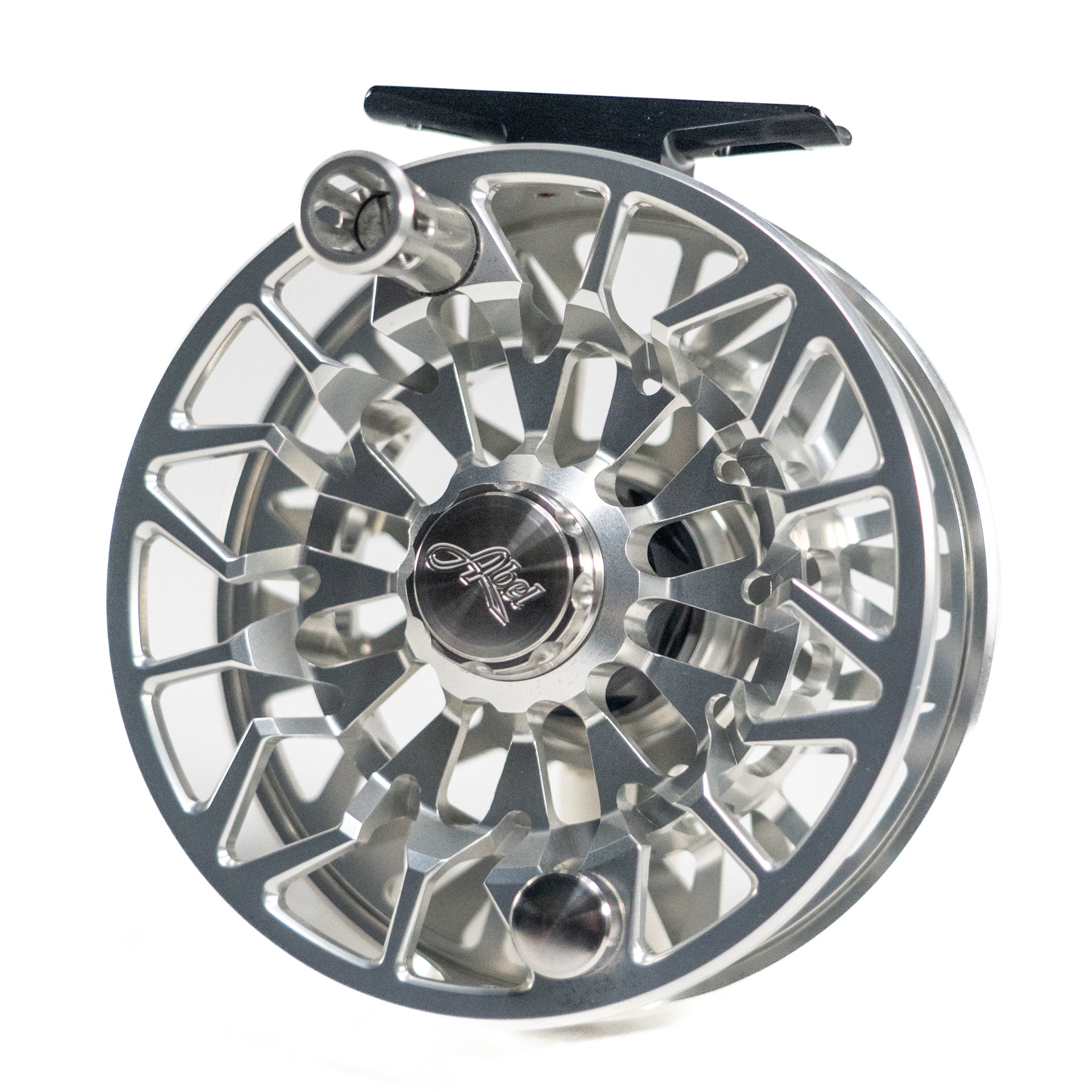 This Abel Abel SDS 9/10 ported fly reel features a Platinum finish, with a Striper Drag knob, and a Platinum handle.