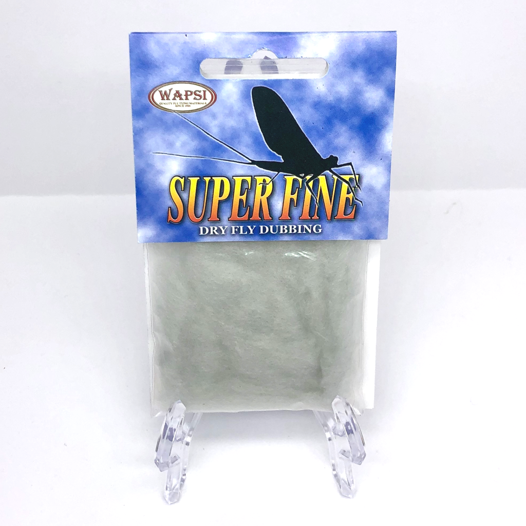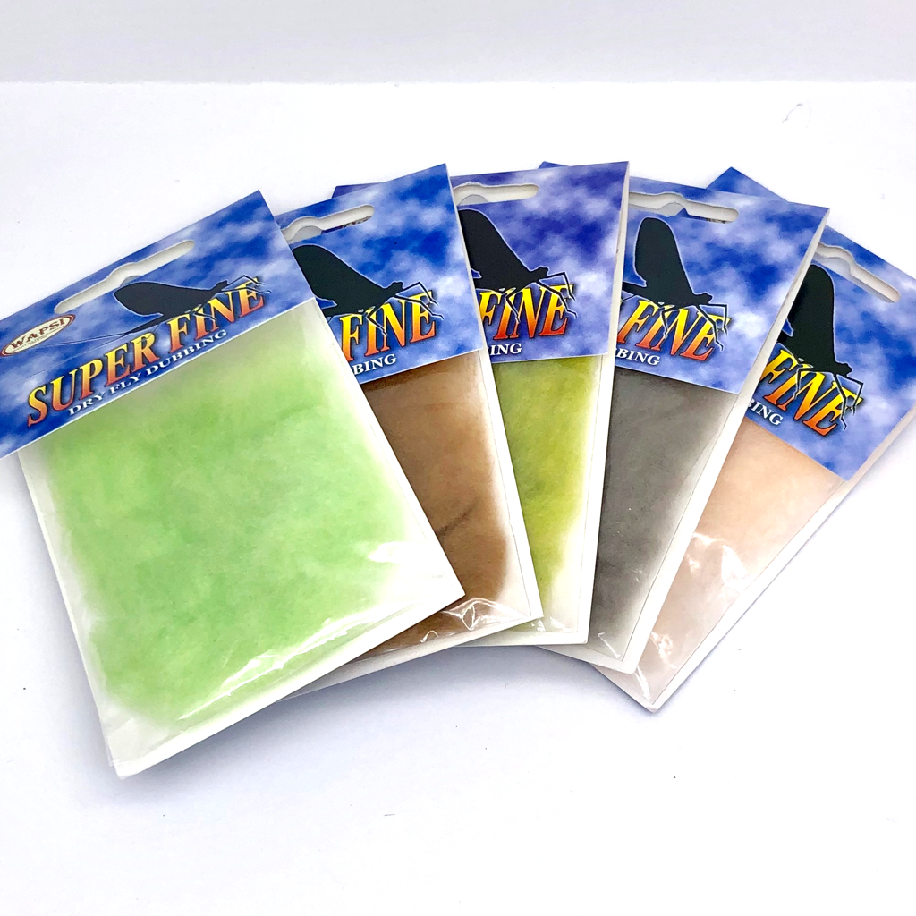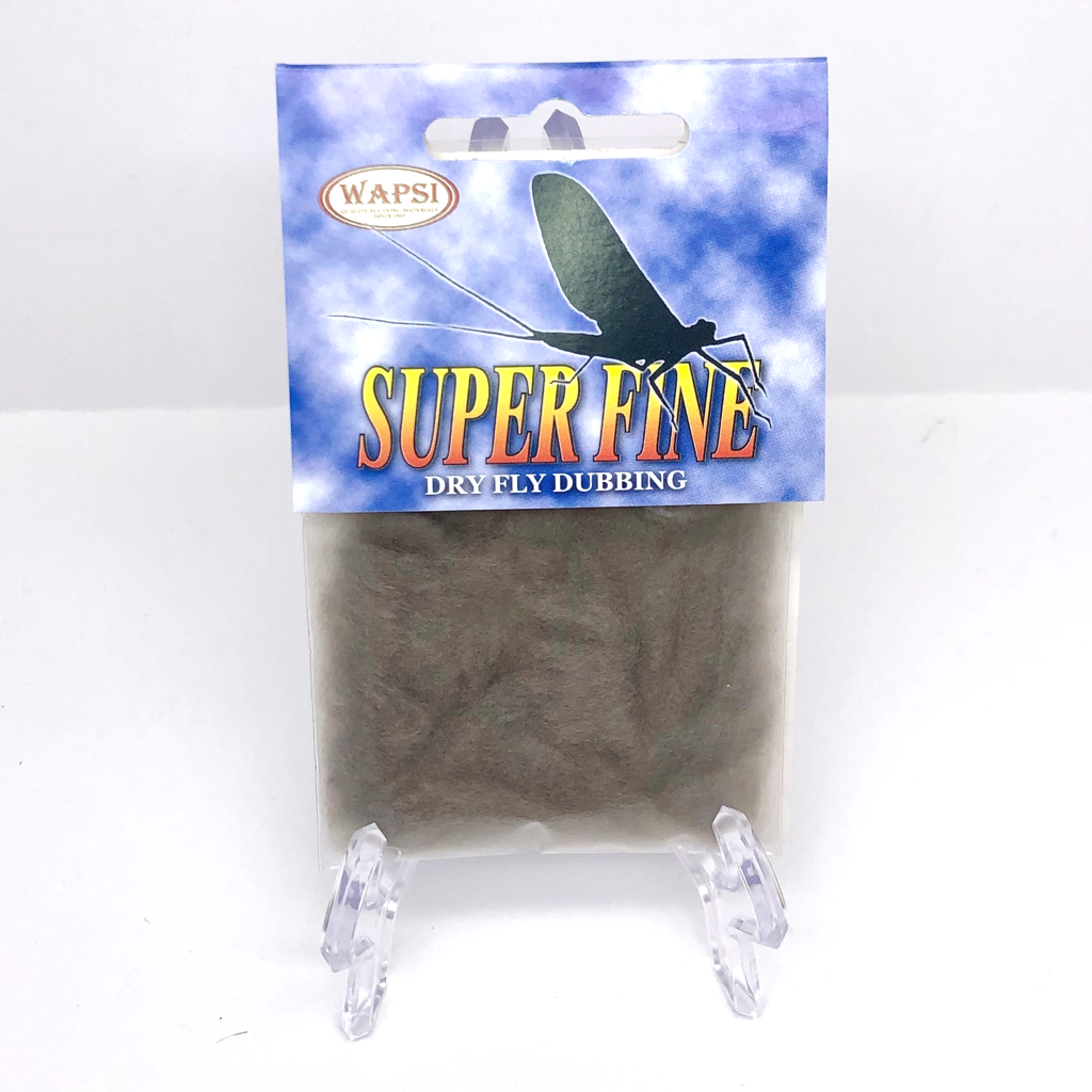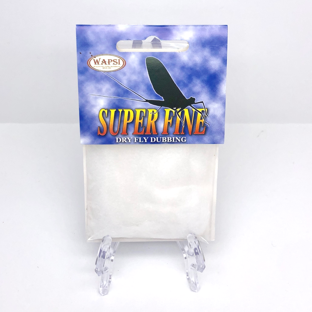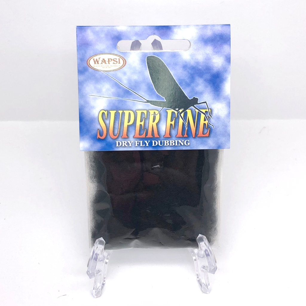 Super Fine Dubbing is a permanently waterproofed 1.2 denier, 1.5″ staple synthetic material. It makes fantastic tight bodies on dries past size 28. Great hatch matching colors.