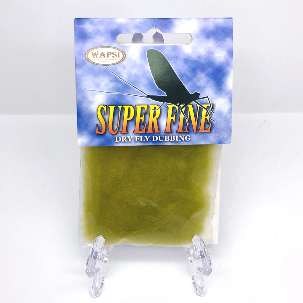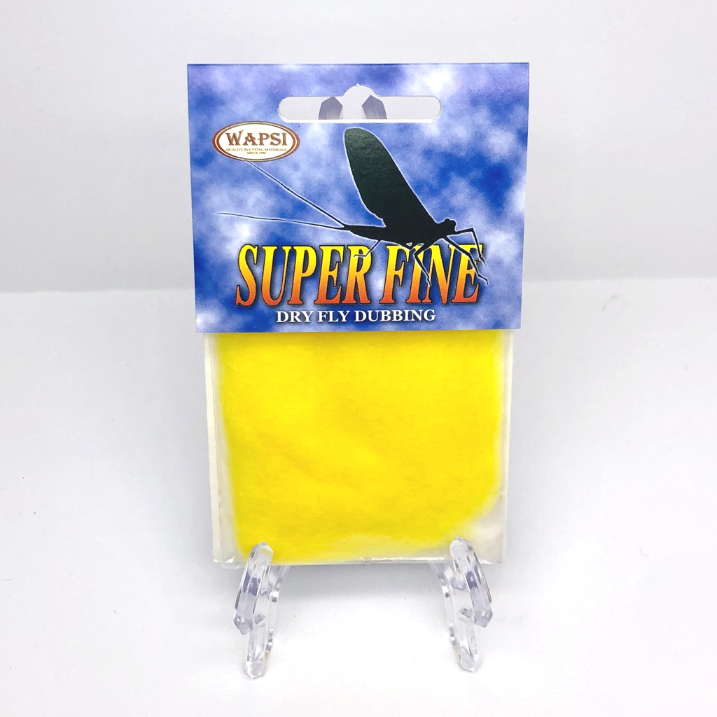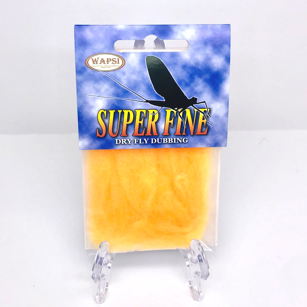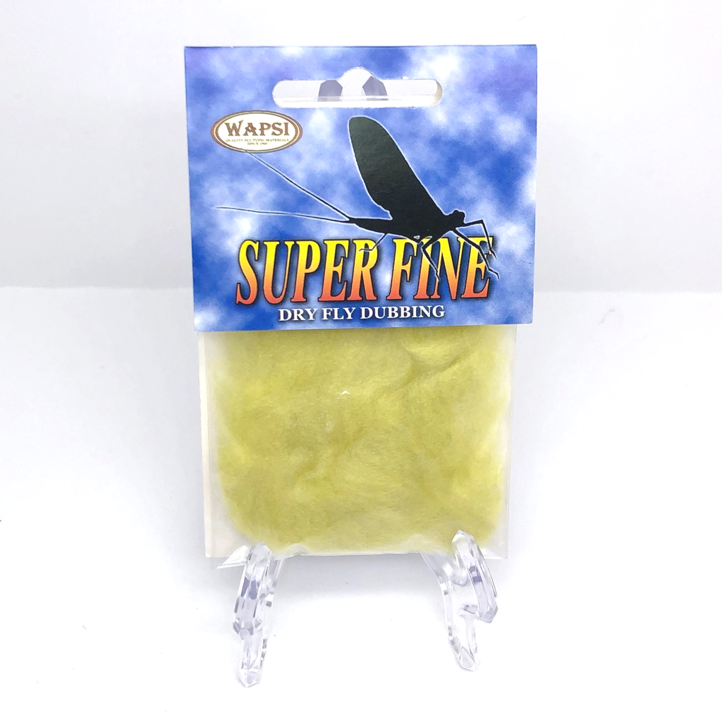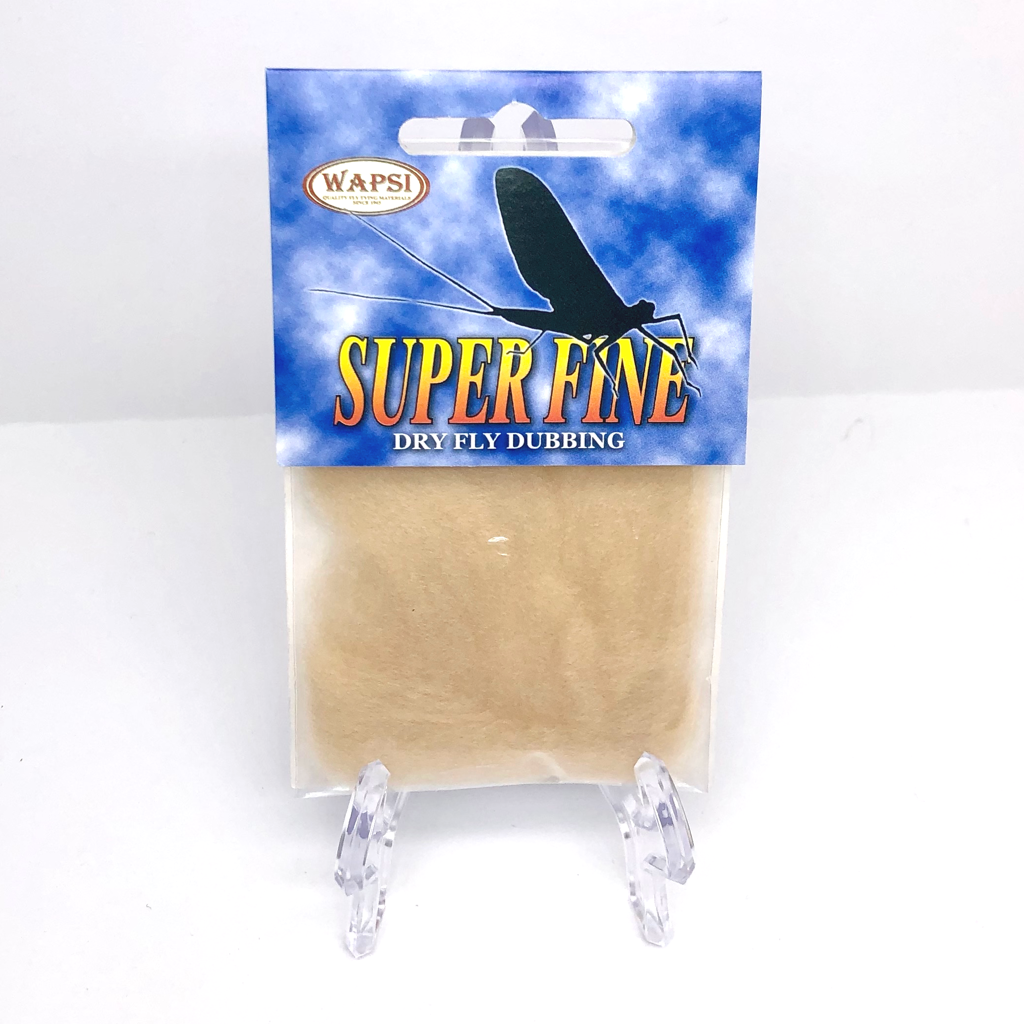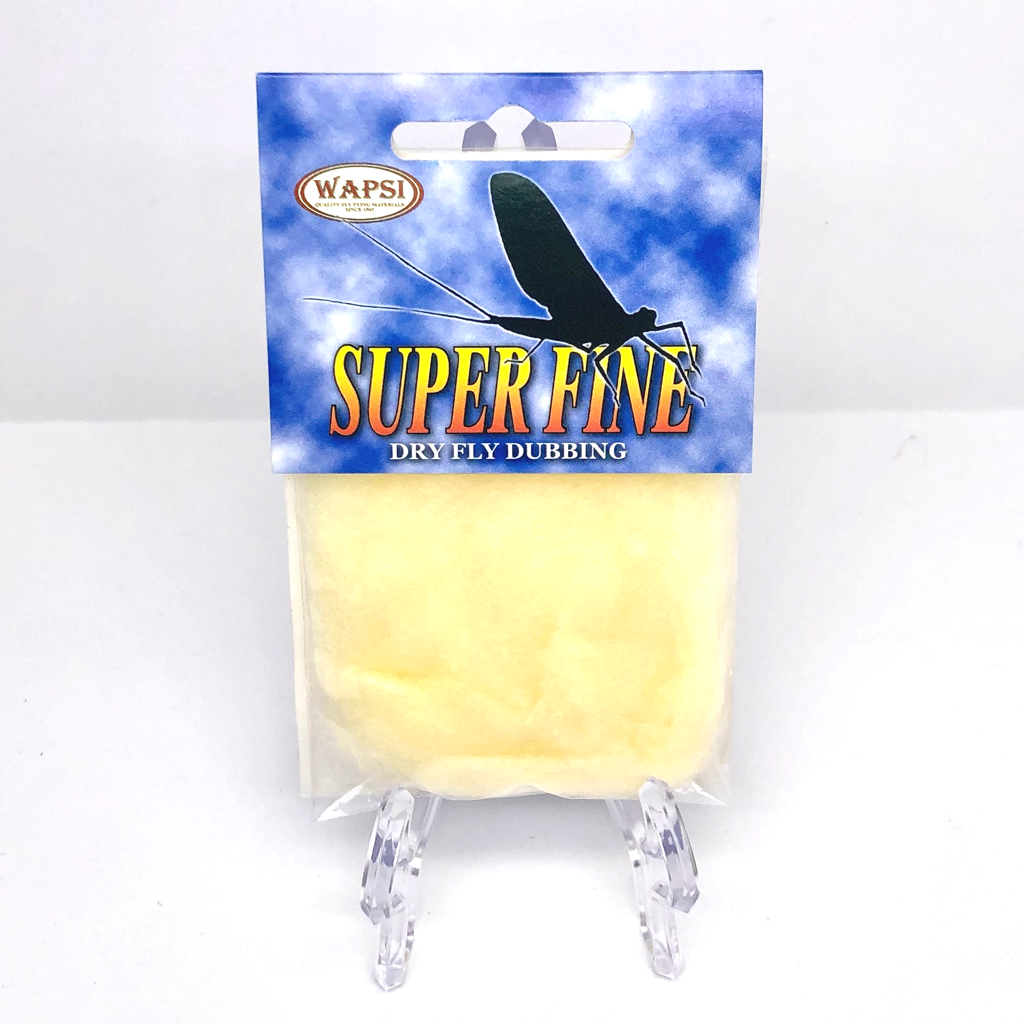 Super Fine Dubbing is a permanently waterproofed 1.2 denier, 1.5″ staple synthetic material. It makes fantastic tight bodies on dries past size 28. Great hatch matching colors.