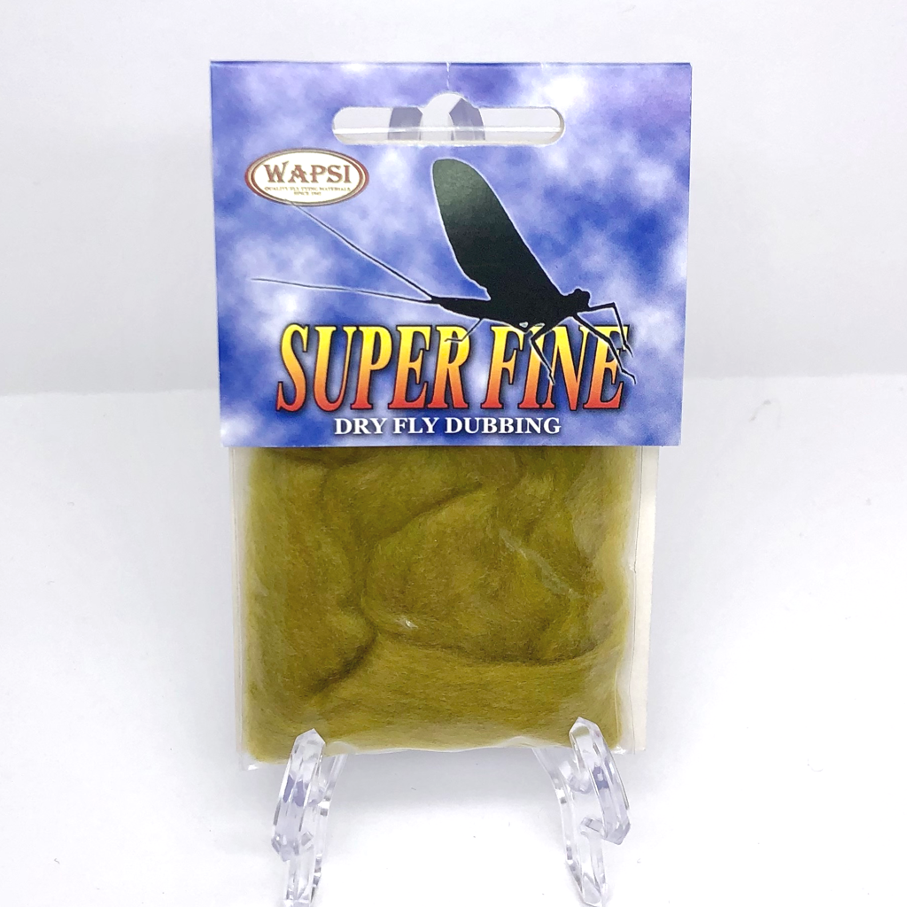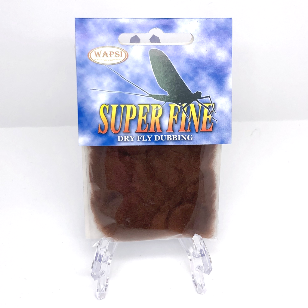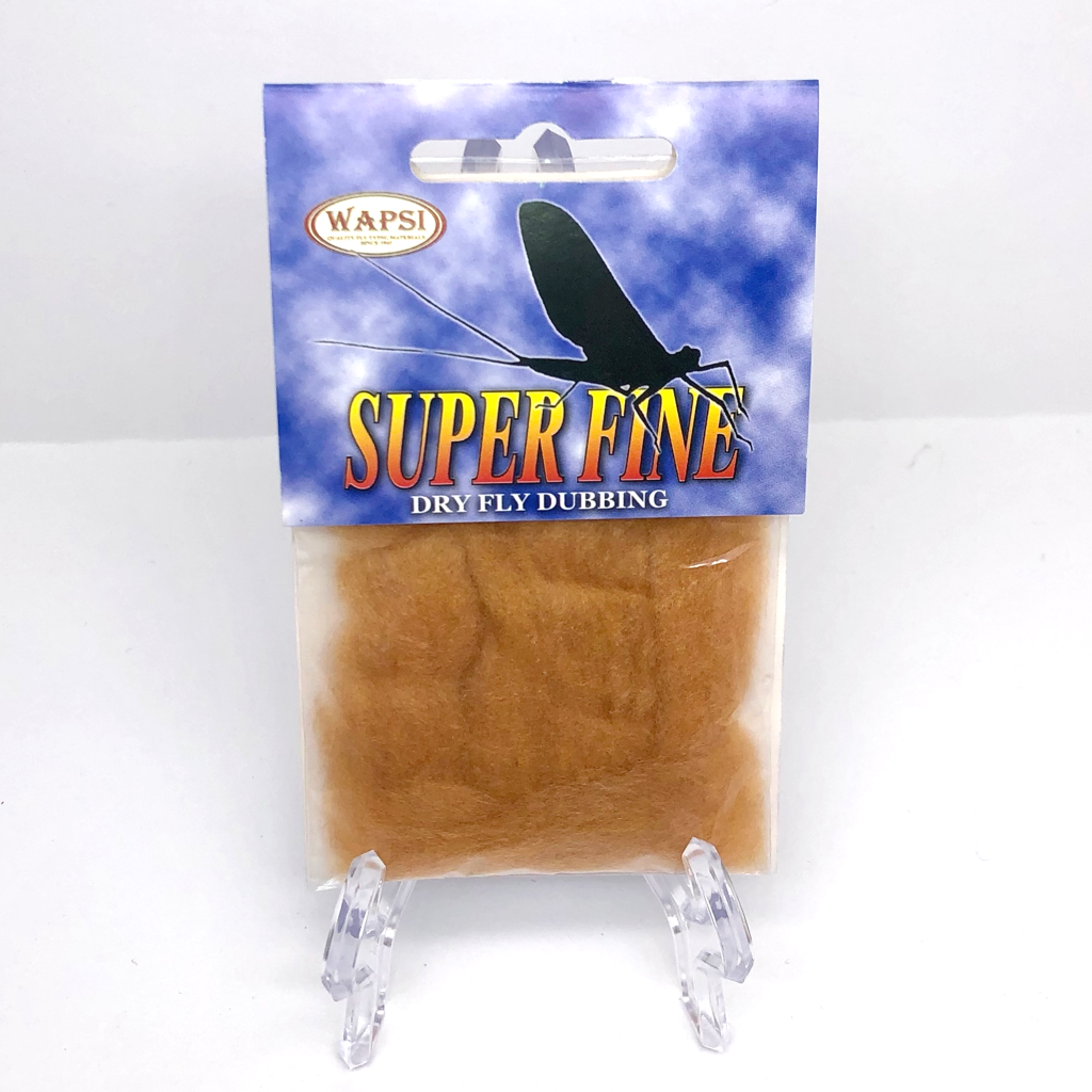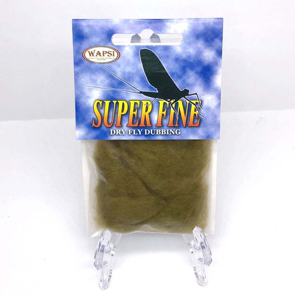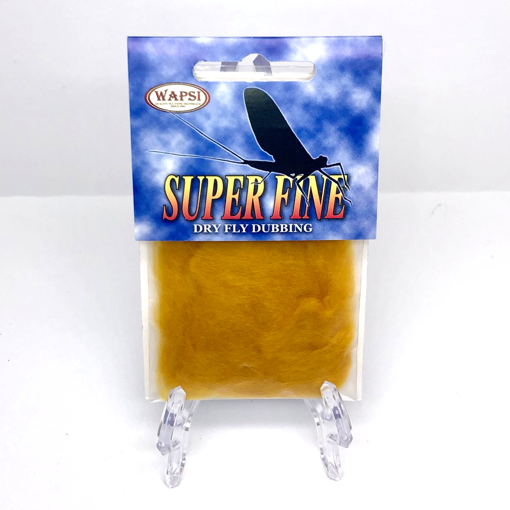 Super Fine Dubbing is a permanently waterproofed 1.2 denier, 1.5″ staple synthetic material. It makes fantastic tight bodies on dries past size 28. Great hatch matching colors.