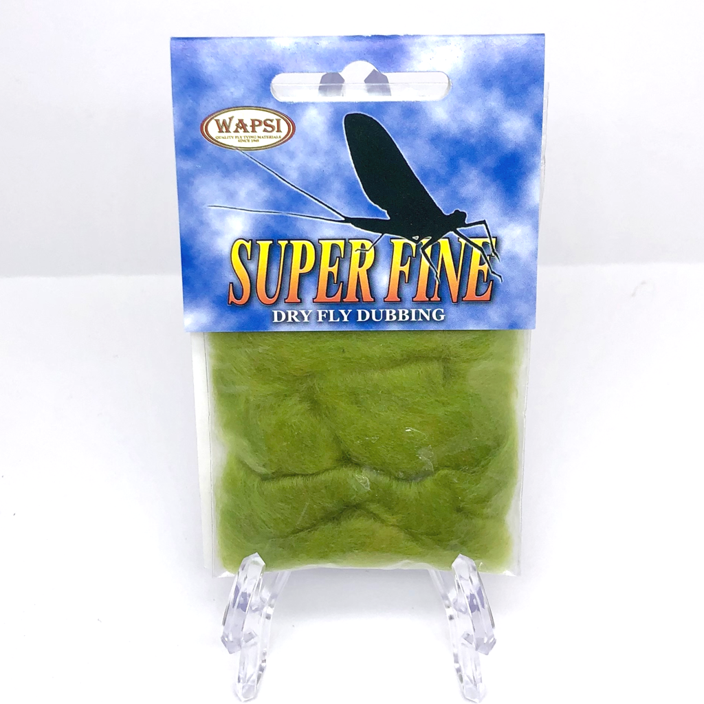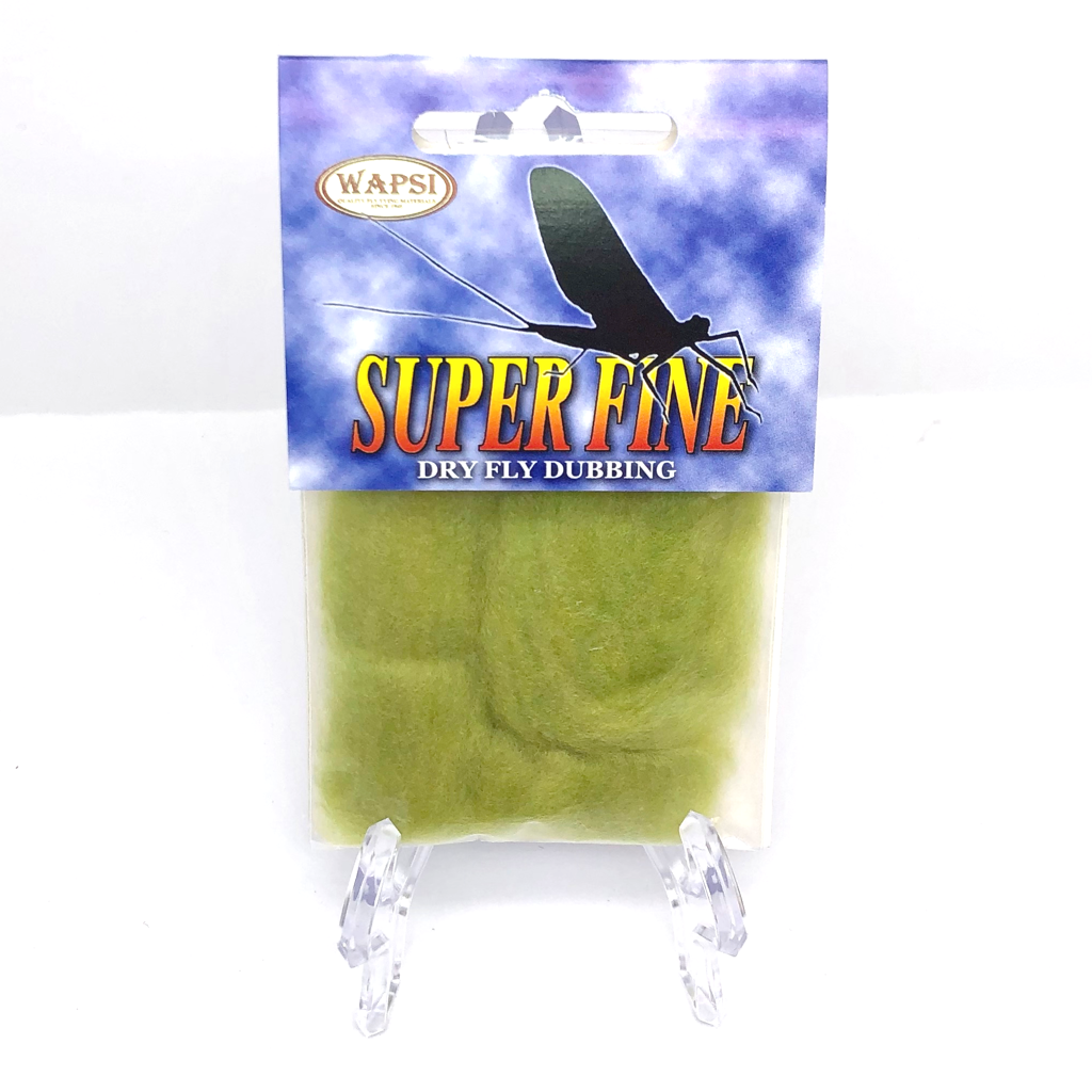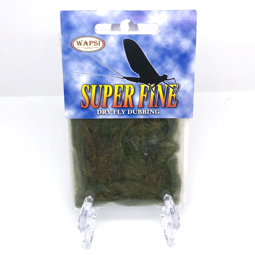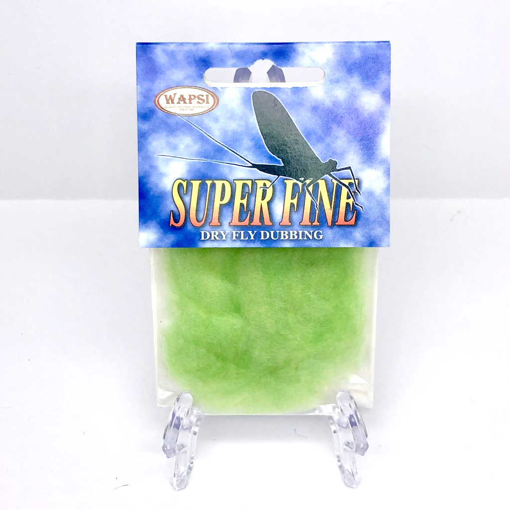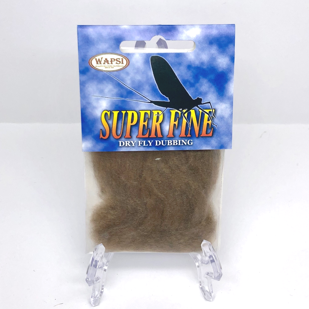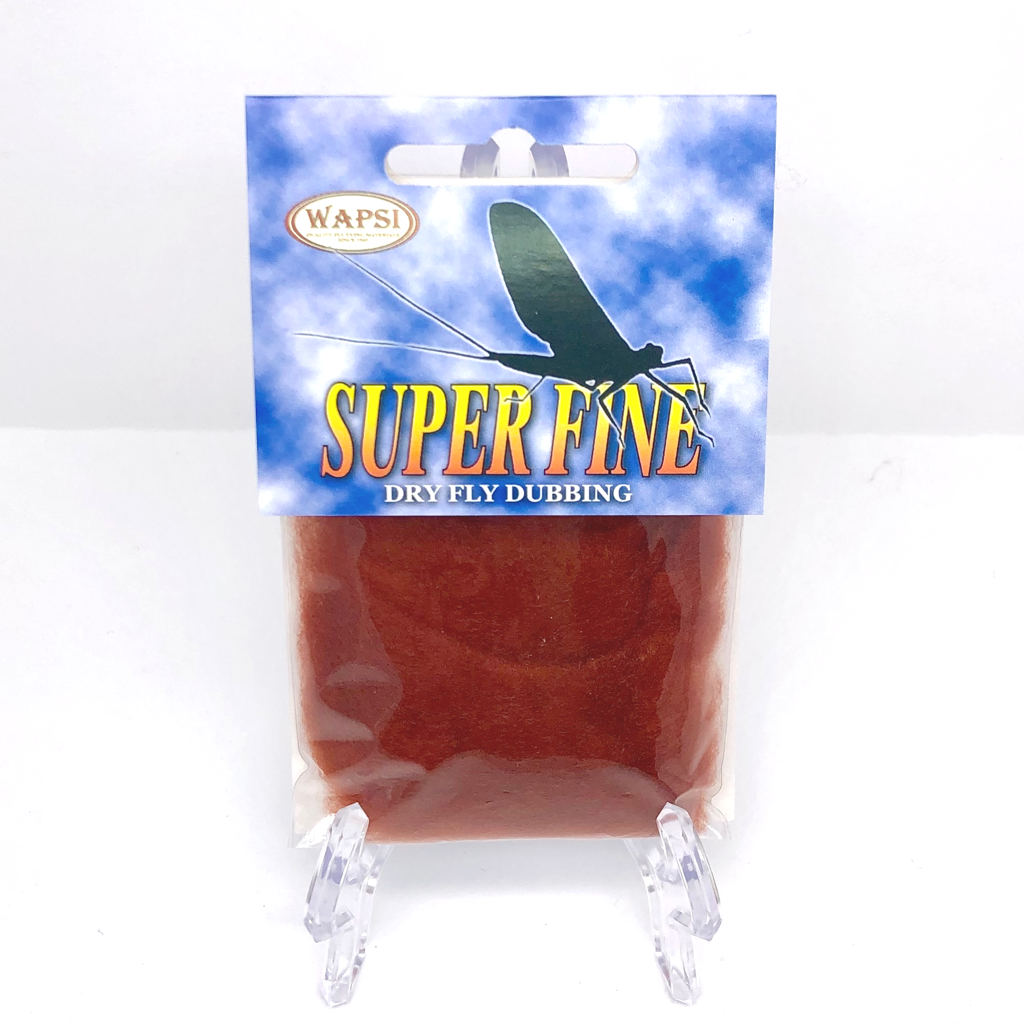 Super Fine Dubbing is a permanently waterproofed 1.2 denier, 1.5″ staple synthetic material. It makes fantastic tight bodies on dries past size 28. Great hatch matching colors.