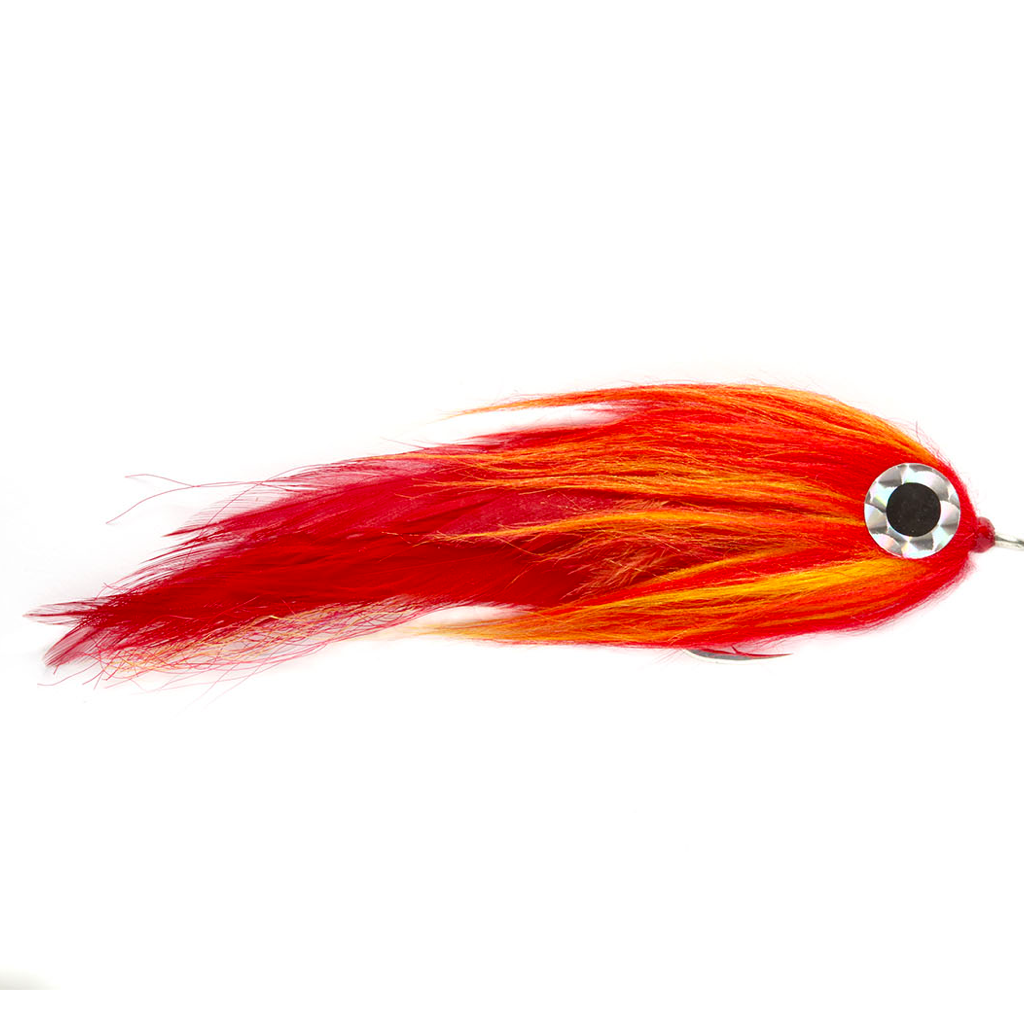 Tied on a 6/0 Big Game Hook this fly is primarily designed for sharks. From Makos to Lemons, This fly will get their attention. This is not a bad choice for those of you headed to Amazon or Bolivia for Payara, Tigers and Golden Dorado. This also makes a decent squid imitation for you Billfish angers when you don't necessarily want a huge popper. This is also a well known as a great GT fly. Huge GTs have crushed this fly which resemebels Lyretail Groupers red Snappers found among coarl heads in the Seychelles and other Pacific locales. This is a "big fish" fly that will get the job done.