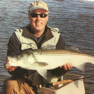 Scott “The Fish Doctor” Loecher is an experienced fishing guide and teacher with over 30 years of passion for his craft. He’s our resident salt water expert and if you’re looking to wade fish on Long Island Sound, he’d be happy to share his expertise on tactics, casting and locating fish. Look to him also for wade fishing tips in the rivers. Scott offers casting instruction in the shop on Saturday afternoons (call for an appointment). Photo above with a striped bass on Long Island Sound.